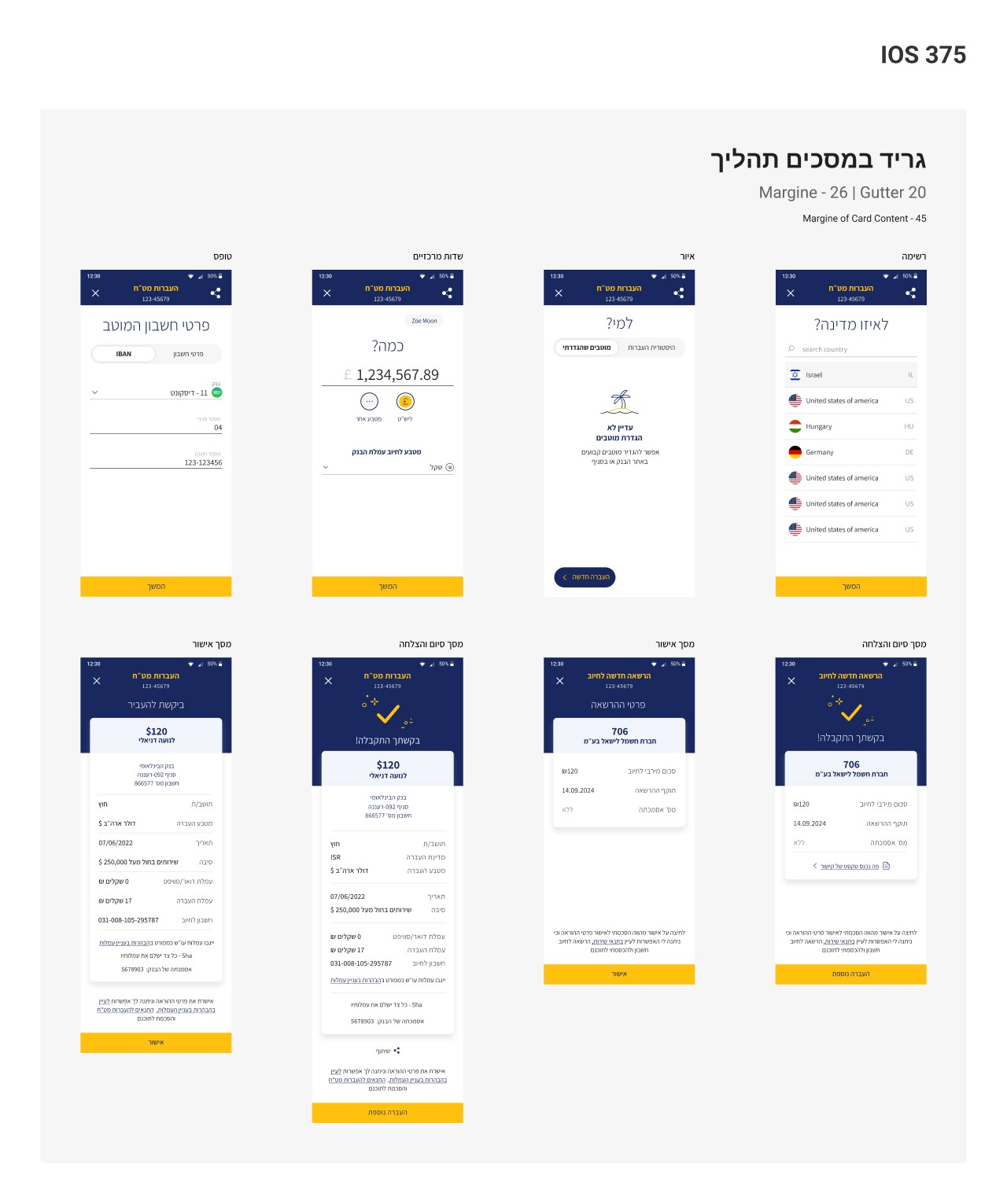 From the "Screen layouts" page in the DSM file - Selected screens from different flows. Also includes instructions for use, implementation highlights and what to avoid